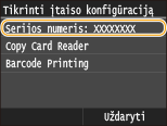ir bakstelėkite <Įtaiso būklė> <Serijos numeris>. |