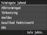 Lisaks: kui vajutate seda klahvi kujutiste printimiseks USB-mäluseadmelt, prinditakse väljaprindid värviliselt. Kui lõpetate seadme kasutamise, vajutage seda klahvi uuesti, et süsteemist välja logida.