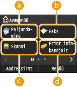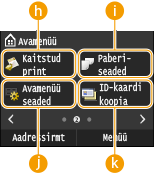 Otsetee nupudSelliste „sageli kasutatavate sätete” kuvamiseks, mis on registreeritud kopeerimise, faksimise ja skannimise kuvadel. Kuvale Avamenüü nuppude lisamine.