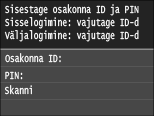 Kui avaneb sisselogimiskuva, kasutage osakonna õige ID ja PIN-koodi sisestamiseks alljärgnevat protseduuri.