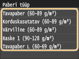 Paberisahtlis oleva paberi formaadi ja tüübi määramine