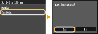 Kui paberiformaadid <1> kuni <3> on juba salvestatud, siis jätkamiseks muutke või kustutage seade. Nende sätete muutmiseks ja kustutamiseks vajalikud toimingud on kirjeldatud allpool.