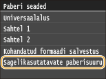 Puudutage valikut <Sagelikasutatavate paberisuuruste valik>.