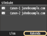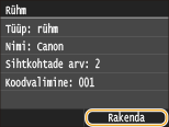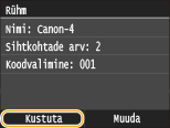 Mitu sihtkohta saab ühendada rühmaks. Rühma saate salvestada kuni 299 sihtkohta (100 sihtkohta meilide jaoks). Pärast rühma salvestamist saate sellesse sihtkohti muuta ja eemaldada.