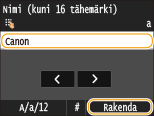 Sisestage numbriklahvide abil nimi ja puudutage klahvi <Rakenda>.
