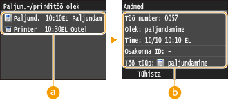 Kui pärast paljundatava dokumendi skannimist on möödunud pikem periood kuid trükkimist ei ole veel alustatud, siis võite kontrollida ootejärjekorras olevate printimistööde nimekrija.