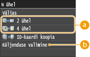 (Suurendamine või vähendamine), kuid suurendamisel võivad dokumendi servad jääda paljundamata.<2 ühel>/<4 ühel> pole saadaval, kui kasutate <Raami kustutamine> või <ID-kaardi koopia>.