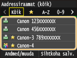 Aadressiraamatu abil saate määrata sihtkoha registreeritud sihtkohtade loendist valimise või adressaadinimega sihtkoha nime järgi otsimisega.