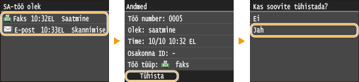 . Fakside saatmise saate tühistada ka pärast faksi oleku vaatamist.