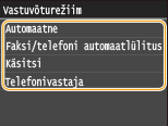 Kui ühendate faksifunktsioonidega välise telefoni, siis määrake telefon fakse mitte automaatselt vastu võtma.