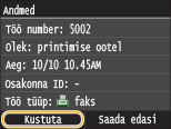 Saate printida vastuvõtuaruanded iga kord, kui dokumendid talletatakse mällu. Aruannete printimiseks puudutage käsku <Sees>. Lisaks peate sätte <RX-i tulemuste aruanne> väärtuseks määrama <Sees>.