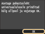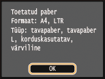 Kontrollige, kas seadmesse on asetatud kuvatava formaadi ja tüübiga paber, seejärel vajutage klahvi<OK>.
