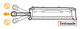 Raputage toonerikassetti viis-kuus korda allpool näidatud viisil, et tooner jaotuks kassetis ühtlaselt, ja pange seejärel tasasele pinnale.