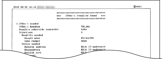 Printides IPSec-protokolli reeglite loendi saate kontrollida seadmes salvestatud reeglinimede ja IPSec-protokolli seadete loendit.