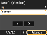 Kinnitamiseks sisestage parool uuesti ja vajutage klahvi <Rakenda>.