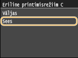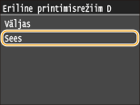 Kui probleemi ei saa lahendada hoolimata antud sead määramisest, siis valige <Eriline printimisrežiim D> kuni <Sees>. Eriline printimisrežiim D
