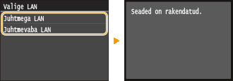 Puudutage valikut <Juhtmega LAN> või <Juhtmevaba LAN>.