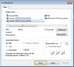Printimise dialoogiboksi kuvamine võib sõltuvalt rakendusest olla teistsugune. Lisateavet leiate kasutatava rakenduse kasutusjuhendist.