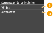*2 Säte <Kaitstud prindi seaded> valida <Väljas> võimaldab printida 50 MB mahus andmeid (Kaitstud prindi seaded).