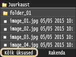Kui USB-mäluseadmes asuvas kaustas on palju faile, kulub prinditavate pildifailide vaatamiseks rohkem aega. Kustutage mittevajalikud failid arvuti kaudu USB-mäluseadmest või teisaldage need mõnda teise kausta.