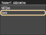 Vajutades <Sees> prindite tooneri säästu režiimis. Valige <Sees> kui soovite enne suure töö printimisega jätkamist kontrollida lehtede paigutust või muid väliseid omadusi.