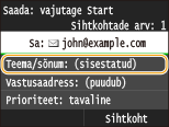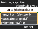 Kui puudutate valikut <Määra LDAP-serverist> või <Määrake ennast sihtkohaks>, valitakse sihtkohaks <Saaja>.