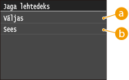 Kui valite üksuses <Failivorming> failivorminguks JPEG ja proovite skannida dokumenti dokumendiklaasilt, saate skannida ainult ühe lehe. Mitmeleheküljelise dokumendi korraga skannimiseks kasutage sööturit. Dokumendi iga lehekülg salvestatakse eraldi failina. Kui valite vorminguks TIFF-i või PDF-i, saate skannida mitmeleheküljelisi dokumente dokumendiklaasilt või sööturist. Sellisel juhul saate kasutada suvandit Dokumendi jagamine lehtede kaupa eraldi failideks, et valida, kas kogu skannitud dokument salvestatakse ühe failina või iga lehekülg eraldi failina.