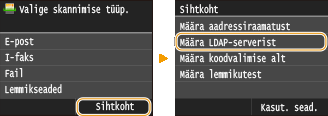 Kui teie kontorisse on paigaIdatud LDAP server, siis võite määrata sihtkoha, kasutades selleks teavet serveris. LDAP serverile juurdepääsuks kasutage masinat ning otsige sobivat kasutajateavet ning määrake see sihtkohana.