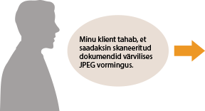 Määrake skannimissätete jaoks oma kliendi e-posti aadress klahvid <Failivorming> ja <JPEG> abil ning salvestage aadress ja sätted koos valikus <Lemmikseaded>. Saate hõlpsalt seda sätete kombinatsiooni kasutada iga kord, kui seda vajate. Sageli kasutatavate sätete salvestamine (e-post/I-faks/ühiskaust/FTP-server)
