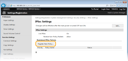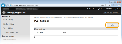 Juhtpaneeli kasutamineIPSec suhtust saate lubada või keelata ka menüüst <Menüü> kuval Avamenüü . IPSec-i kasutus