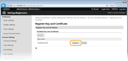Klõpsake nuppu [Register Key and Certificate] või [Register CA Certificate].