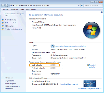 Provjerite naziv računala.