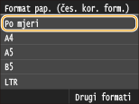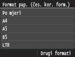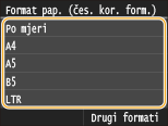 Ako se zaslon prikazan iznad ne prikazuje, a papir je umetnutAko uvijek umećete isti papir u višenamjensku ladicu, preskočite operacije postavljanja papira tako da registrirate format papira i vrstu kao standardne postavke. Međutim, kada je registrirana standardna postavka, zaslon iznad se ne prikazuje. Da bi se prikazao zaslon, odaberite <Navedi pri ulaganju papira> (Registriranje standardnih postavki papira za višenamjensku ladicu).