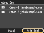 Ponovite korake od 7 do 9 dok ne registrirate sva odredišta koja želite registrirati, a zatim dodirnite <Primijeni>.