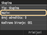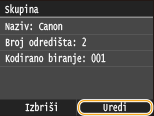 Nakon registriranja odredišta u grupi, moguće je promijeniti sadržaj registriranih podataka. Na primjer, možete promijeniti naziv grupe ili kodirani broj za biranje, dodavati/brisati odredišta itd.