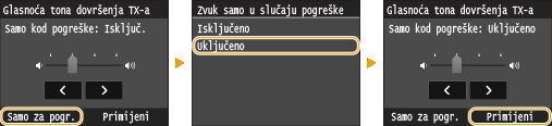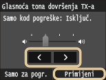 Odaberite <Uključeno> (proizvodi se zvučni signal) ili <Isključeno> (ne proizvodi se zvučni signal).