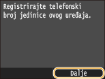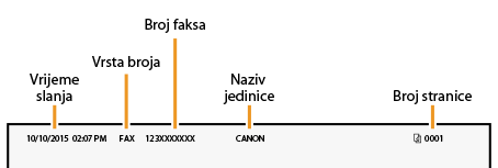 Registrirajte broj faksa i naziv uređaja. Podaci se ispisuju pri vrhu svake stranice koja se šalje iz uređaja.