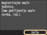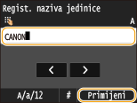 Unesite naziv (primjerice ime korisnika ili tvrtke) pomoću numeričkih tipki i dodirnite <Primijeni>.