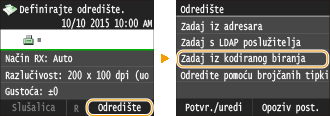 Ako ste u 2. koraku naveli grupno biranje, na zaslonu se prikazuje <Broj odredišta: XX> Dodirom te stavke prikazuju se odredišta registrirana u grupi.
