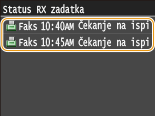 Omogućuje ispis izvješća o rezultatima primanja pri svakom pohranjivanju dokumenata u memoriju. Da biste ispisali izvješća, dodirnite <Uključeno>. Potrebno je i mogućnost <Izvješće o rezultatu RX-a> postaviti na <Uključeno>.