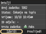 Možete pogledati detaljne informacije o dokumentima pohranjenima u memoriji, uključujući brojeve faksa pošiljatelja i broj poslanih stranica, a zatim izbrisati nepotrebne dokumente.