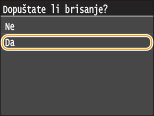 Omogućuje registriranje lozinke s najviše sedam znamenki. Da biste registrirali lozinku, pomoću numeričkih tipki unesite lozinku, a zatim dodirnite <Primijeni>. Ponovno unesite iste brojeve radi potvrde, a zatim dodirnite <Primijeni>. Ta je lozinka potrebna pri promjeni postavki za primanje u memoriju ili pri deaktiviranju značajke primanja u memoriju radi ispisa svih pohranjenih dokumenata. Ako ne želite registrirati lozinku, dodirnite <Primijeni> bez ikakvog unosa.