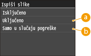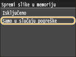 Odaberite <Uključeno> ili <Samo u slučaju pogreške>