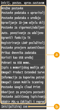 <Mrežne postavke> <Inicijaliziranje mrežnih postavki> <Da> Ponovno pokrenite uređaj |