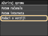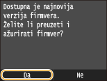 Ako se prikazuje poruka <Ovo je najnovija verzija opreme.>, nema potrebe za ažuriranjem firmvera.