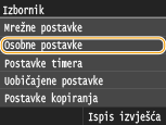 Omiljene postavke faksiranja Omiljene postavke skeniranja Postavljanje redoslijeda prikazivanja Umetni i izbriši razmak |