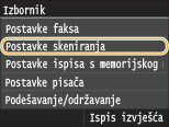Na popisu se nalaze sve postavke skeniranja s kratkim opisima. Zadane su postavke označene bodežom (