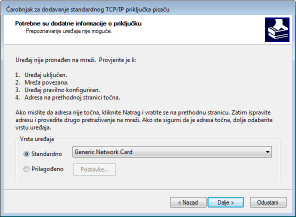 ![]() * Kada odaberete [Vrsta uređaja], odaberite [Canon mrežni uređaj za ispis s P9100] pod [Standardno].