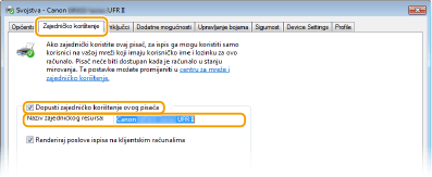 Upravljanje ID-em odjela pri uporabi ispisnog poslužiteljaTijekom instalacije upravljačkog programa pisača morate dodati "Canon Driver Information Assist Service" Pogledajte "MF Driver Installation Guide (Vodič za instalaciju MF upravljačkih programa)" za detalje.