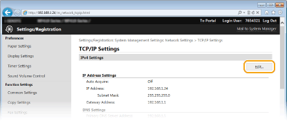 Kliknite [Edit] u odjeljku [IPv4 Settings].